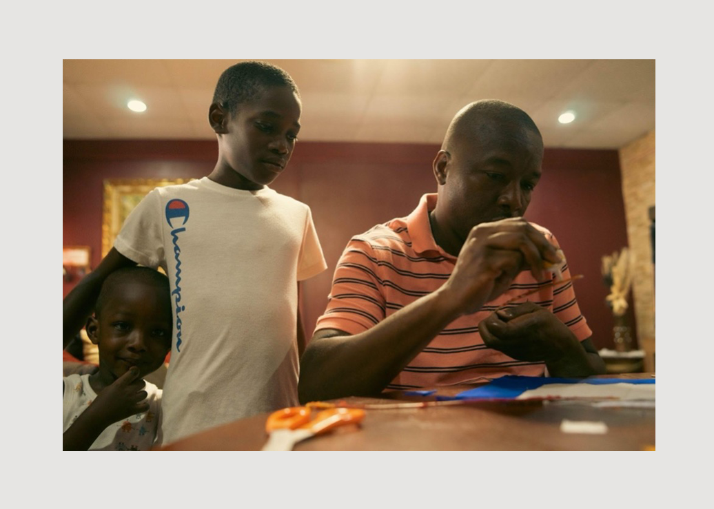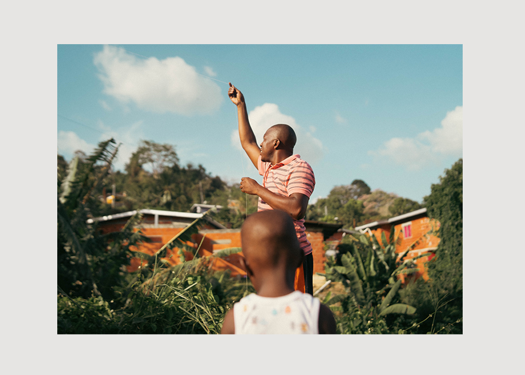 Olajuwon: This portrait is of my cousin and his son, two people whose relationship I truly admire. It’s a bond that strays from the societal norm, where fathers are often seen as absent or emotionally distant. What stood out to me in this moment was how something as simple and sweet as kite making/kite flying became a way for them to connect to create a memory together. There’s a sense of care, presence, and joy that I felt deeply while watching them.