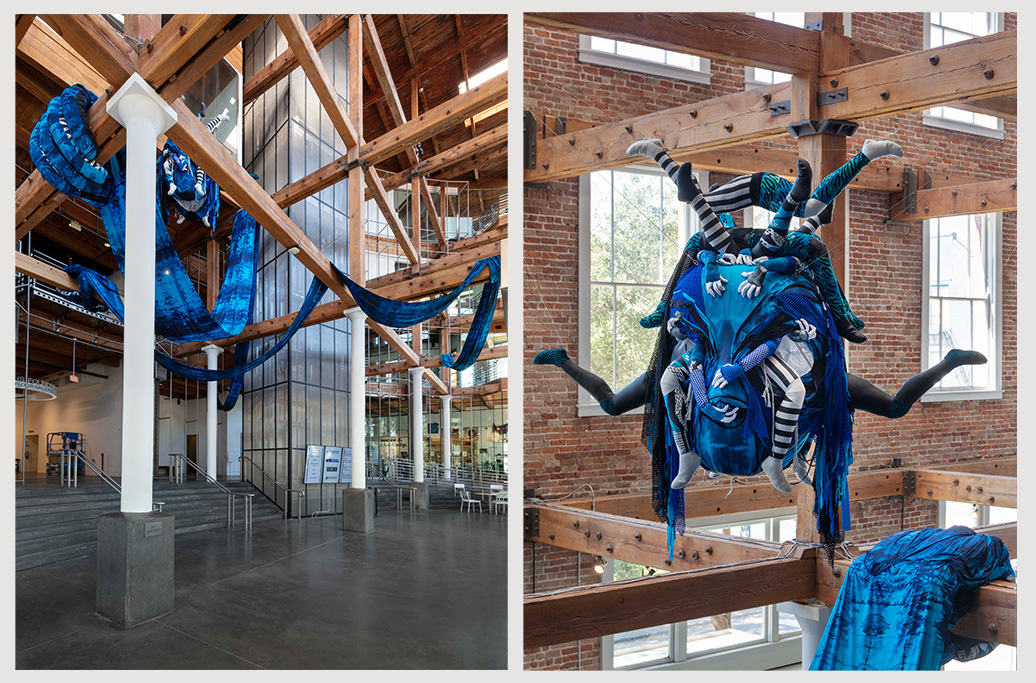 ‘Three Whistles and a Howl’, 2024 (detail). Installation view at the Contemporary Arts Center, New Orleans, Prospect.6: The Future Is Present, The Harbinger Is Home. Commissioned by Prospect.6. Image courtesy of the artist and Prospect New Orleans. Photo by Jonathan Traviesa.